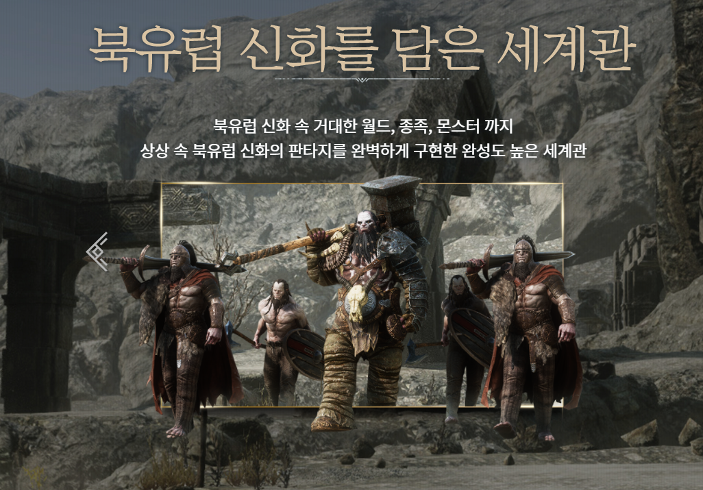발할라 라이징' 지금 사전 등록 진행 중 ■ mmorpg, 신의 영역에 다다르다 모션 캡처 등을 통한 실사 그래픽 구현 ■ 신의 영역을 향한 모험의 시작 거인, 난쟁이, 알브, 인간 등 다양한 종족 ■ 전사여, 신의 영역을 차지하라 압도적인 스케일의 보스 레이드.
