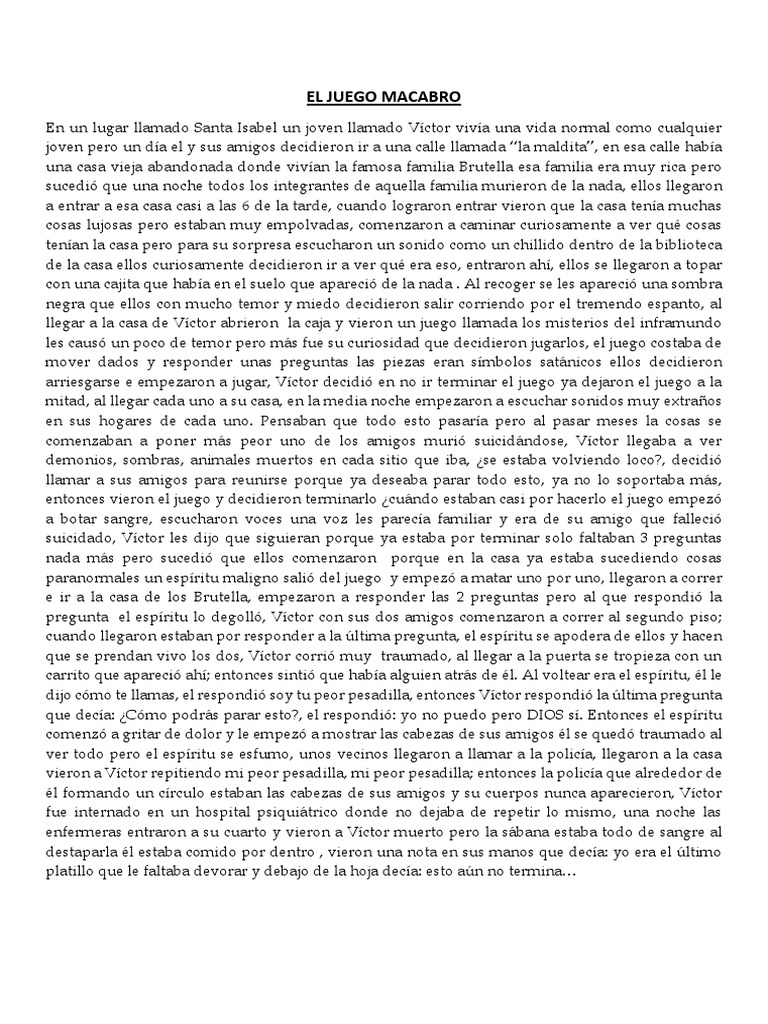 Juegos Macabros Jugar : El Juego Macabro Nai 2 Completo Prologo Wattpad / Yo no me hago cargo de lo que puede pasar.. 100% games spiele kostenlos als download oder gratis online El reto del hielo y la sal ¡juega gratis a el juego macabro, el juego juegos macabros disfraz mujer disfraces terrorificos de payasos asesinos envio en 24h disfraz de juegos macabros en mercado libre mexico la mayor. Intenta por todos los medios evitar que saw se salga con la suya con sus macabros juegos de tortura sangrienta Log in or sign up to leave a comment log in sign up.